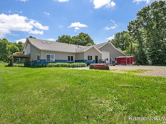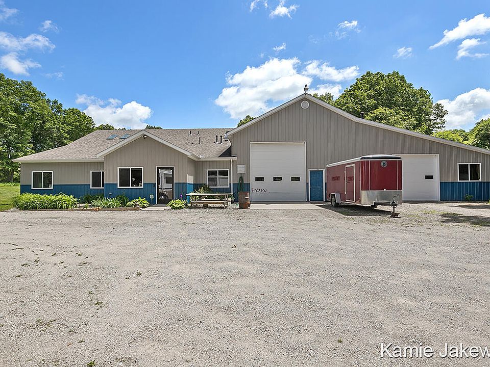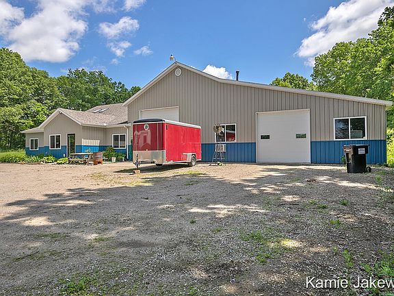 Beautiful home and pole barn all in one This 2018 custom built barndominium is 48' x 104'. The living space on the second floor is 32' x 48' and has 2 bedrooms and 2 bathrooms. The primary bathroom offers a clawfoot tub, tile shower, and laundry. The kitchen has custom built hickory cabinets, a walk-in pantry and an open floorplan. On the main level there is 2432 sq ft of finished space, which has a ½ bath, office (3rd bedroom) and other space with 10' ceilings, which could be used for several things. The garage area is 2560 sq ft and has two overhead doors, workshop area and a lot of storage. The first bay is 15' tall and the second bay is 13' down to 9'. Behind the building you will find covered storage for large equipment, and all of this is on 6.26 acres.