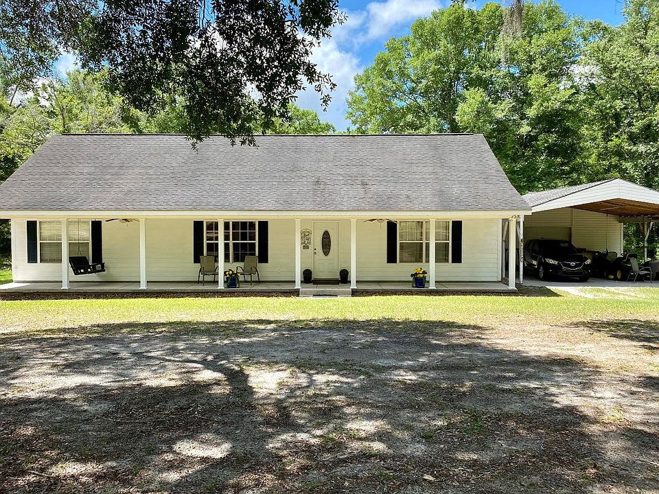 Beautiful Country Home on 5 Acres in North Florida! Full-Length front porch is perfect to enjoy the long summer evenings. Open living concept. Gas fireplace with brick hearth. Bay windows in the dining area. Extra seating at the bar. Wood cabinets. Spacious laundry room. Split floor plan. Detached 2-car carport with small workshop/storage on the end. Scattered Oak Trees. Small subdivision is located about 5 miles West of I-75 in a rural farming community. Centrally located between Tallahassee & Jacksonville, FL.