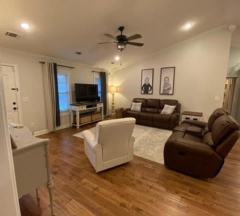 Look no further, your dream home has just been listed. Step inside this four bedroom/two bath home with extras from entry to exit. Mom will LOVE the hardwood flooring, granite countertops, tile backsplash, mudroom, 12 x 25 playroom/sunroom, large kitchen pantry, and open floorplan. Dad will LOVE the one acre lot, 6x6 safe room/gunroom, fenced backyard, and metal shop with concrete slab and roll up door. Kids will LOVE the proximity of Justamere Farms across the street where they offer riding lessons, and boarding if needed. The homeowners added a new HVAC unit in August 2021 to accommodate the added square footage of playroom . It came with a ten year warranty that should transfer to the buyer. They also have an active termite bond through Astro Exterminating. Let's go home and pull up a rocking chair and watch the horses play in the field across the street!!!