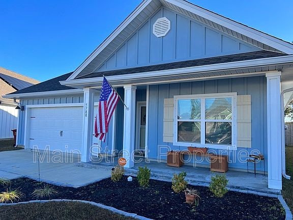 Craftsman style 4 bedroom rental home in Pace! This home has a very open floorplan. Kitchen is open to the living room and dining room and with granite countertops, stainless appliances, a large corner pantry, and double-sided center island. The Master Bedroom has a trey ceiling with a separate shower and garden tub in the master bath. The master bath also features double granite vanities, walk in closet, and separate water closet. Hall bathroom and laundry are convenient to the other 3 bedrooms. Home has a 2 car garage with a covered patio and covered front porch. This property requires participation in the MSPM Tenant Benefit Package for an additional monthly fee. Additional information on this program can be found upon submission of application