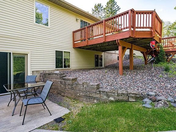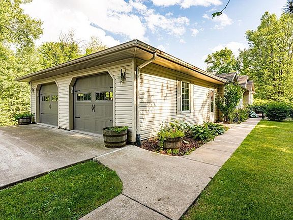 The beautiful setting of this house is a dream. Just the right amount of lawn and woods to give you the seclusion you are looking for. Cute little red country barn, fenced garden area and nice firepit area. This house is very unique in the sense of there is a separate living quarters downstairs for a mother in law apartment or guest quarters. There are 2 bedrooms and an office upstairs with full kitchen, Dining room, living room and laundry while the lower level has a 1 bedroom, efficiency kitchen, laundry, living room and dining room open floor plan. It could be a great single family home with an entertaining family room downstairs. Love the attached 2 car garage and also a separate garage for your toys. Short distance to shopping and recreation areas!