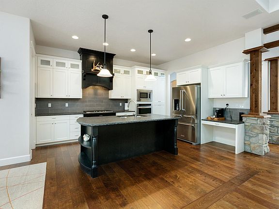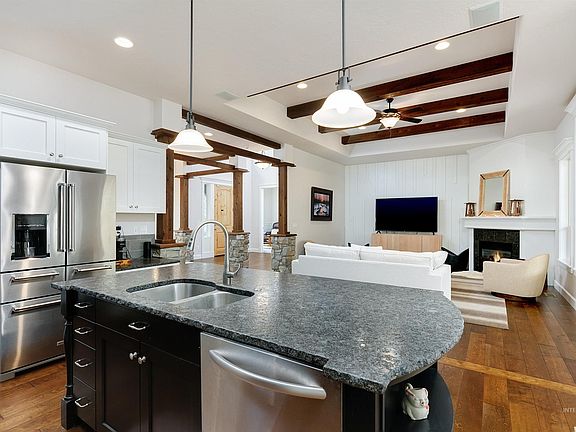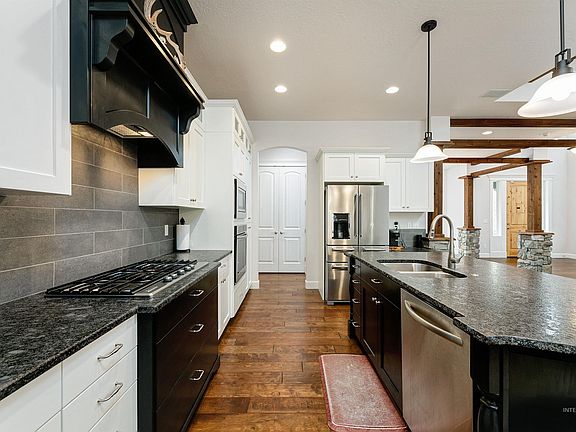 Must see, beautiful home tucked away in the Boise Foothills! Trails and wildlife all around, large lot with no back or front neighbors. Home features fine craftsmanship throughout with wood beams, stone accents, coffered ceilings, wainscoting, vaulted and 10 ft ceilings, wood floors, shadow box windows, and much more. Split bedroom floor plan with extra bedrooms each having their own bathroom and one with a walk-in closet. Separate office. Large master suite with dual walk-in closet, beautiful shower, and arch framed tub. The backyard has been professionally designed with a covered patio that makes your living space feel expanded, pavers, pergola, and new fence. Spacious 3 car + tandem garage, with 220v. Low maintenance yard work provides extra time for enjoying relaxing moments in your new home. Resort style amenities Avimor offers a community center, extensive trail system, tennis courts, parks, playgrounds, two community pools, microbrewery/restaurant, and just a 10 minute drive to State St.