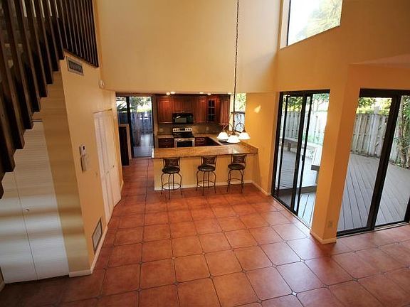 Great location with huge trees and walking paths throughout the community and the lake in the center. 5 minutes to Boca Town Center Mall, great shopping , fine dining, close to highways. Best Boca school zone, minutes to beaches. Newer appliances, full size washer and dryer, two master bedrooms with carpet upstairs. Third bedroom and bathroom downstairs. Remodeled open kitchen with granite countertops. Large fenced backyard with freshly painted wood deck. Gated community with 1 assigned parking space. 2 pets allowed