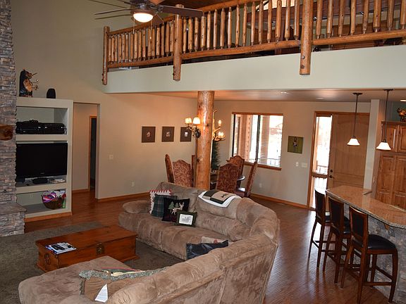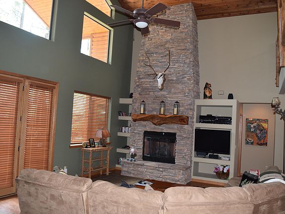 Beautiful Pinetop mountain home in the Country Club area. Built in 2006 with great attention to detail. Split floor plan with 3 oversized Bedrooms. Master bath has a large shower, jetted tub & walk-in closet. All bathrooms have ceramic tile finishes. Bedroom #2 is ensuite & a 3rd full bath room is adjacent the 3rd Bedroom. The kitchen has stainless appliances, gas range, granite counters & a large breakfast bar with rock face to compliment the 18 foot fireplace. The living area with 25 foot ceiling opens onto a large rear deck. Both the front & rear decks are covered and the decking is Trex type maintenance free material. The loft is 29' feet long & an ideal game room. Living area ceilings are T&G, beautiful wood flooring & wood blinds. Furnishing available outside of escrow.