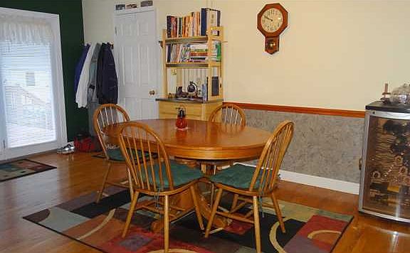 SPECTACULAR PRICE ON THIS EYE CATCHING HOME IN NORTH RANDOLPH! Over 1600 sq ft with open living room, dining room and kitchen. Hardwood flooring in kitchen, dining, living room foyer & hallway. Large living room with wood burning stone fireplace. Large bedrooms. Separate laundry rm w/ built in cabinets & vanity/sink.New roof in 2009. HVAC replaced one yr ago. Gorgeous marble floors in bathroom.Nice deck and patio for outdoor entertaining.20 X 12 outbuilding. Nice private back yard. Epoxy garage floors.