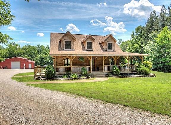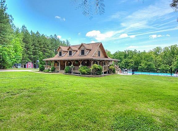 Your Personal, Picturesque Retreat! One-of-a-Kind Log Home on 14+ Acres! Detached 40x44 Garage/Workshop---Perfect for Storing Toys of All Sizes or a Car Lift! Attached 2-Car Pass-Through Garage is Ideal for Opening Up & Entertaining around the Gorgeous In-Ground 16x36 Pool (built in '08 w/ALL EQUIPMENT CONVEYING) with Spacious Pool Deck. This Unique Home boasts Tons of Rustic Charm! Wraparound Porch offers Plenty of Space to Enjoy Your Morning Coffee & Take in Your Surroundings. Inside, you'll find a Sizable Kitchen w/Stainless Steel Appliances, Bar Seating Area, Pantry, Hardwood Flooring, & Lots of Counterspace. FIRST FLOOR MASTER BEDROOM has a Large, Ensuite Bathroom w/Dual Sinks, Soaking Tub, Walk-In Shower & Walk-In Closet. Dining Room features Sliding Doors to Porch, Chandelier & Flows into the Cozy Living Room. Upstairs, you'll find 2 Sizable Bedrooms w/Carpet & Lots of Closet Space, plus a Bonus Room. Hall Bathroom has Dual Sinks & Tub/Shower. Additional Outbuildings, Tractor Shed (16 x 16 & 16 x32), Playhouse, Creek w/4-Wheeling Trails & Basketball Court will Convince You that You're on Vacation All The Time!