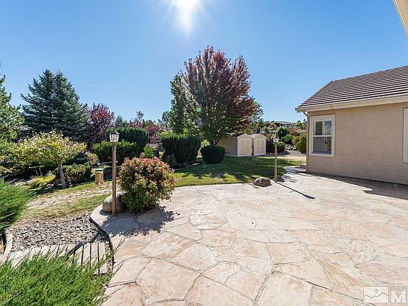 Welcome to Grandview located near Lake Tahoe, World Renowned Ski Resorts, beaches and Premier golf courses! Moments to Wolf Run golf course and 20 min to Reno-Tahoe Airport.This impressive single story, 3 bedroom home has a 4th bedroom/office or den option. The private lot provides panoramic views of the S/W Vista Valley and majestic Mountain's.Enjoy the peaceful scenery and pristine mature landscaping from the spacious front porch and back patio.The 4 car insulated garage has an abundance of space! Low HOA, See optional 4th bedroom option per the builder floor plan. The 2 sheds in the back yard stay. 4 car garage includes epoxy floor, multiple shelves and cabinets with a Workbench included. Utility sink also in the garage. The Fireplace is located in the great room/Kitchen area.