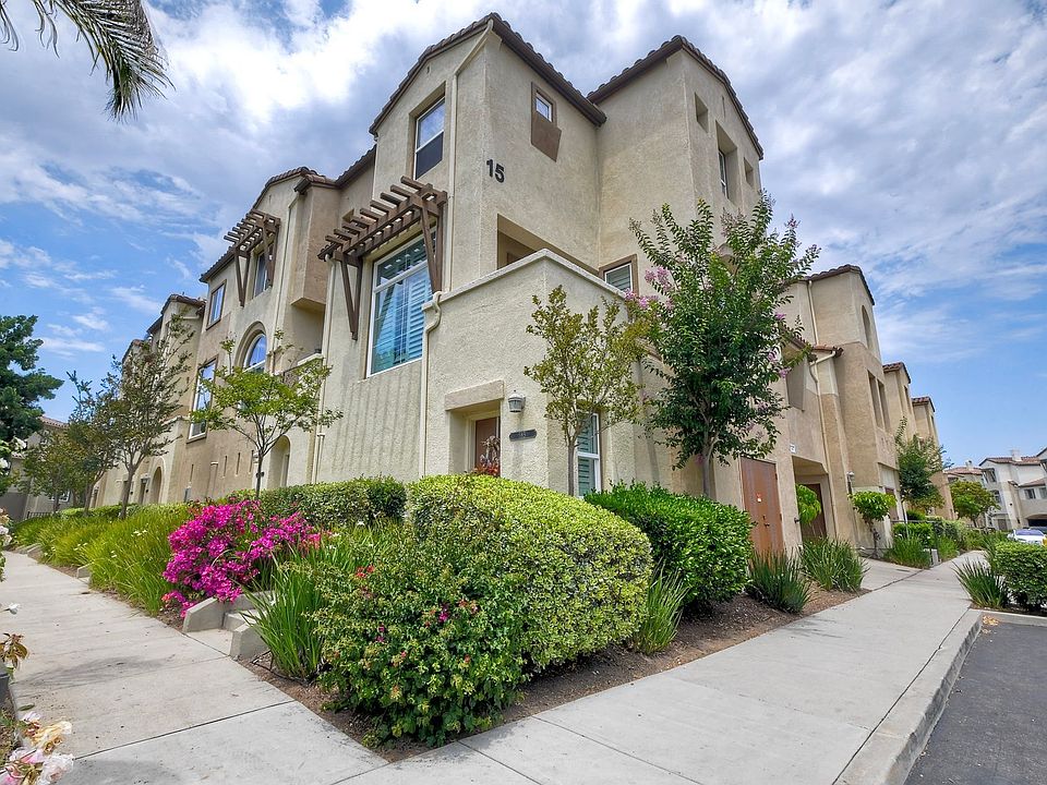 Rarely available 3-level townhome in Corte Bella gated complex of Coronado Ranch less than 1 mile from CSU San Marcos. New carpet and paint throughout. This two bedroom, two and a half bath townhome features hardwood floors on main floor, 2 master suites on upper level, A/C and 1-car garage equipped with washer and dryer, PLUS huge additional assigned parking space. Tenants will have access to a variety of community amenities including a clubhouse with a pool, spa and a playground. No smoking. Smaller dogs will be considered. The main living area features an open floor plan with the living room, dining area and kitchen sharing the space, plus half bath. The kitchen features stainless steel appliances, a custom backsplash, and a peninsula that can be used as additional dining seating. A private balcony faces a quite open park space in front of the home.. Credit and background check required with on-line application via Rent Spree after in-person or virtual showing of property. Schedule showing with agent by phone or text. Security deposit is required of at least $2400 depending on credit to be paid plus 1st month's rent prior to move in. Gross income equal or greater than 2.5x rent is required for single tenant, 3x rent for for 2 tenants, 4x rent for 3 tenants, etc. Tenant pays for utilities : Electric, gas, water, cable, wifi as needed. Owner pays for trash collection and common area fees. Showings will be initially scheduled for Saturday July 19 from 11am to 3pm, and will likely be the only day of showings.
