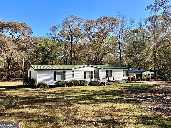 Step into quiet country living with this beautifully renovated 1,716 sq ft, 3-bedroom, 3-bath home on a serene, fully fenced 2-acre wooded lot in southeast Spalding County. Just minutes from downtown Griffin and with quick access to I-75, this property offers the perfect balance of privacy and convenience. Inside, you'll find a bright and inviting layout that includes a dedicated flex room, 3 bedrooms and 3 full baths. Renovations include new lvp flooring, new carpet in bedrooms, new water heater, new HVAC to include new ductwork, boots and vents, new electrical outlets, fans and lights, new showers, sinks, toilets in bathrooms, and a new sliding glass door leading from the dining area to a spacious backyard deck-perfect for entertaining or simply enjoying the peaceful view of your private woods. The kitchen features freshly painted cabinets with new countertops and new stainless steel appliances, while a washer/dryer are also included for your convenience. You'll also find a new parking carport and two shed's (one new) in the yard. Updates extend throughout the home, promising move-in readiness and comfort. Whether you're relaxing on the deck, working from your home office, or exploring the fenced acreage, this property offers a combination of rural charm and modern updates. Agent Owned.