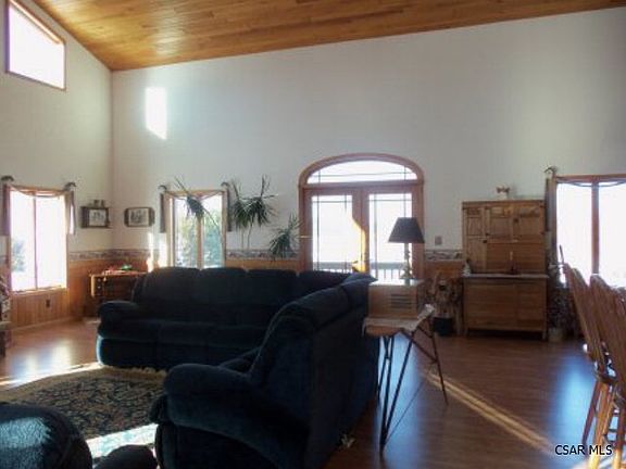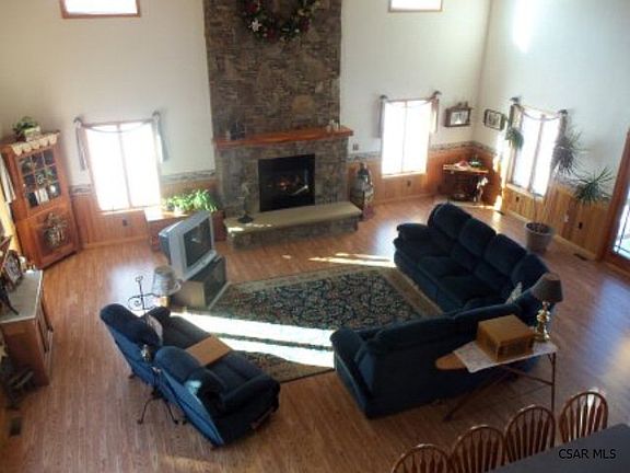 Spread out in this 4 bedroom,3 bath home on 4.355 acres. The home features a 30' X 30' family room with a 23' ceiling, skylights, wet bar and huge field stone, propane fireplace. The laundry room is conveniently located on the first floor and the over-sized 4th bedroom has a walk-in closet. Enjoy central air conditioning with this geothermal system and never run low on hot water with 2 hot water tanks. The attached garage measures 28' X 44' and there is an additional 1+ car detached garage. Public water line adjoins this property.