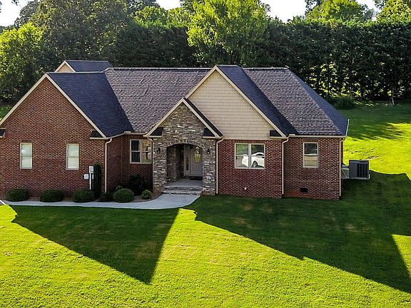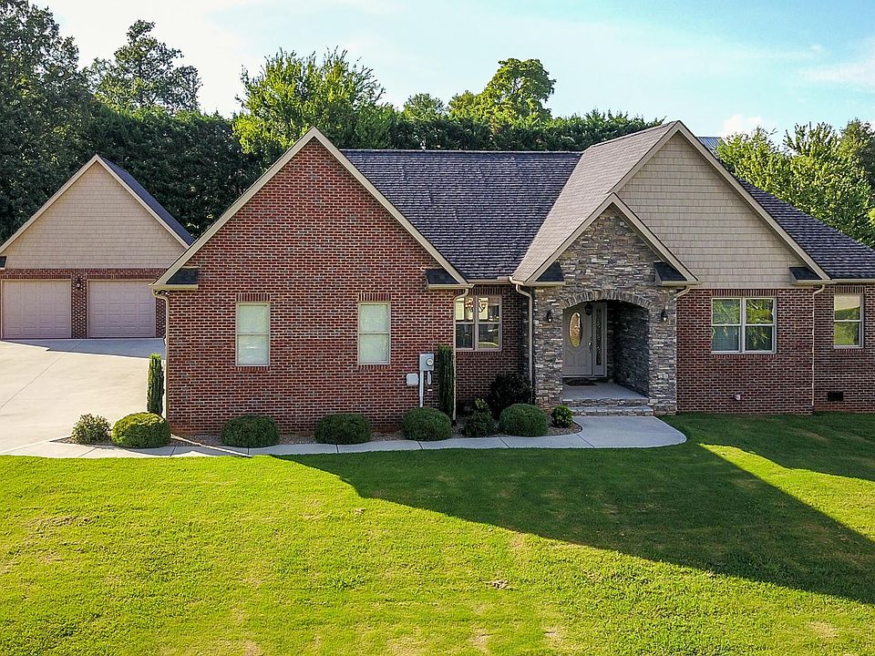 THIS BRICK & STONE HOME FEATURES PANORAMIC MOUNTAIN VIEWS & HAS A MATCHING BRICK DETACHED 2-CAR GARAGE SO BRING ON THE BOATS & SPORTS CARS! AMENITIES TO INCLUDE: COVERED FRONT PORCH (W/GREAT MOUNTAIN VIEWS), OPEN FLOOR PLAN, 3/4'' CHERRY HARDWOOD FLOORING (NO CARPET IN THIS HOME!), GREAT ROOM (W/HARDWOOD FLOORS, STONE GAS FIREPLACE & 2 CEILING FANS), OPEN DINING AREA (W/HARDWOOD FLOORS & 9' CEILING), LARGE KITCHEN (W/CORIAN SOLID SURFACE COUNTERTOPS, HANDMADE CHERRY CUSTOM CABINETRY, STAINLESS APPLIANCES, TILE FLOOR & 11' CEILING), BREAKFAST ROOM (W/HARDWOOD FLOORS), LARGE MASTER BEDROOM (W/HARDWOOD FLOORS, CEILING FAN, & 9' CEILING), MASTER BATH (W/DOUBLE SINKS, TILE FLOOR, CUSTOM TILE SHOWER & JETTED TUB), 2 GUEST BEDROOMS (W/HARDWOOD FLOORS & 9' CEILINGS), GUEST BATH (W/TILE FLOOR & 9' CEILING), HALF BATH UTILITY ROOM (W/CHERRY CABINETRY & TILE FLOORING), COVERED PATIO, PRIVATE BACKYARD & THE AWESOME MATCHING 30 X 28 DETACHED BRICK GARAGE!