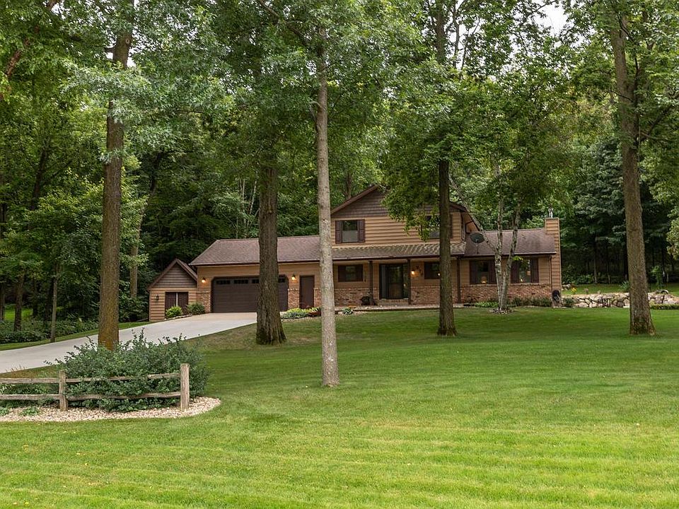 Storybook charm in this well manicured setting come in and you will want to stay a while! Nestled on a wooded 2.23 acre lot this 2 story home is so inviting and warm. A great place to entertain in the main floor family room with vaulted ceilings, a gas fireplace and even a bar! The kitchen is complete with quartz countertops, newer appliances, a kitchen island and loads ofcabinet space for your holiday cooking just around the corner. Main floor laundry and a 4 season room round off the main floor. There are 3 bedrooms and 2 baths up. The master has a wall of built ins, and walk in closet & an updated 3/4 bath with walk in shower. Room in the lower level for future expansion. The yard you just have to see for yourself, deck, patio, woods and even an extra shed for gardening, toy storage or your own cute She-shed! Country living in the city! Home has been pre-inspected too! See it today and start packing!