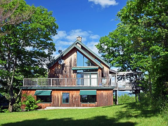 Nestled in an expansive 14.53+/- acre lot with stunning views is this secluded timber frame home. The main level boasts vaulted ceilings, a woodstove with a beautiful stone hearth, and soaring windows which provide abundant natural light and astonishing views of Lake Champlain and the Adirondack Mountains from the living room, and Camel's Hump and Mt. Mansfield from the kitchen. Spend warm summer days on the shady side deck in the calming breeze, or catching some rays on the back deck after taking a dip in the pond. Bask in your own private sanctuary in the master suite with a full bath that includes a whirlpool tub and relaxing views of the green mountains, or cozy up with a good book in the reading nook. The lower level has ample space for entertaining or a home gym with a sauna to soothe those post workout muscles. Take advantage of the outdoors with plentiful hiking and mountain biking trails just adjacent to the property at the Mud Pond Country Park and Conservation areas.
