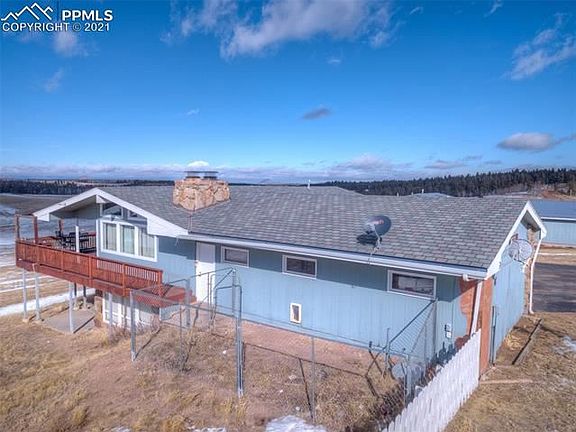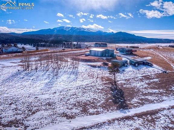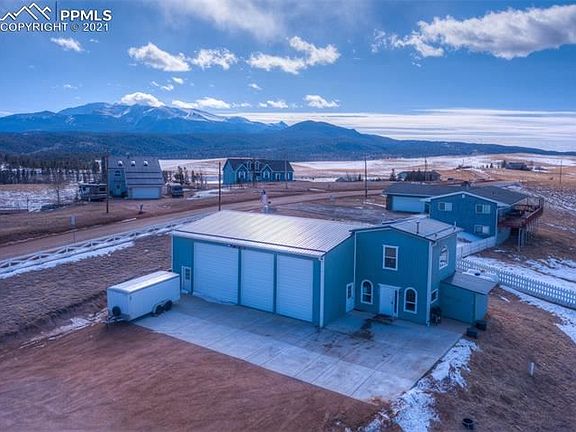 UNBELIEVABLE SUNSETS, PIKES PEAK VIEWS, MORE THAN ABUNDANT STORAGE, 5 GARAGES, 3 ARE LOCATED IN THE 40X50 RV/BOAT STORAGE AND/OR SHOP BUILDING. ALSO ENJOY THE INCOME PRODUCING DETACHED AIR B&B WITH 1 BEDROOM, 1 BATH, CUTE KITCHEN/DINING ROOM. SUPER EASY ACCESS ABOUT 1/2 MILE FROM MAIN HIGHWAY 24. 360 DEGREE VIEWS, AMAZING SUN KEEPS THIS HOME WARM. YOU ENJOY THE ELK DOWN IN THE VALLEY OFF YOUR PRIVATE DECK. THIS WONDERFUL HOME COMPLIMENTS THE PROPERTY WITH 4 BEDROOMS, 3 BATHS, WITH MAIN LEVEL LIVING, ONLY A FEW STEPS FROM THE FOYER. EXTRA HEATED OFFICE OFF THE ATTACHED GARAGE. SPACIOUS LIVING ROOM WITH BAY WINDOW IS ALL OPEN TO THE LARGE DINING AREA WITH ROCK FIREPLACEW/ FIREPLACE INSERT AND WALKOUT TO COVERED DECK AREA. AMAZING SUNSETS! GREAT WORKABLE KITCHEN WITH VIEWS THRU THE WINDOW TO THE WEST, NEW GAS STOVE W/ ELECTRIC OVEN COMING. YOU'LL LOVE THE LAUNDRY AREA OFF THE KITCHEN W/ PANTRY SHELVES FOR MORE STORAGE. MASTER BEDROOM HAS ATTACHED 3/4 BATH WITH TILED SHOWER AND WALKOUT TO YOUR PRIVATE DECK AREA. YOU'LL BE PLEASANTLY SURPRISED AT HOW SPACIOUS AND BRIGHT THE LOWER LEVEL IS. YOU'LL SEE 2 FAMILY ROOM AREAS, BOTH LARGE, WALK OUT TO LOWER PATIO AREA. EFFICIENT RINNAI HEATER MAKE IS SO NICE. BAR IS SET UP WITH ROUGH PLUMBING FOR A WET BAR. ALSO INCLUDES 2 MORE BEDROOMS AND A FULL BATH. BEAUTIFUL WHITE FENCING ALONG THE MAIN ROAD. FENCING IN THE REAR, DOG RUN. EVEN AN EXTRA SHED NEXT TO SHOP BUILDING, TOOL SHED, 5 STALLS AND MUCH MUCH MORE STORAGE. 40X50 SHOP HAS 3 HUGE GARAGE DOORS, 2 - 10'6 X 14 DOORS AND 1 - 16' X 14' DOOR. THIS IS ONE OF A KIND!!!