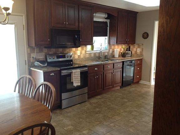 Super neat and move in ready! Gorgeous hardwood and tile. Newly remodeled kitchen complete with granite countertops, beautiful tile backsplash, nice cabinets, and tile floors. Huge master bedroom and bath with separate shower and whirlpool tub. Handscraped hardwood in large living room with vaulted ceiling. Insulated garage- 3 bays and workshop area- over 1200 sq. ft. with electricity and heat/air! Propane tank is leased. Large deck with great view-swingset remains with home!