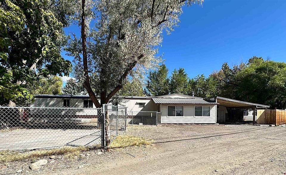 Updated 1982 Montrose 16x76 manufactured home with 2 bedrooms and 1 1/2 Baths. Nice living area with wood burning fireplace. Enclosed porch/mudroom with storage. The yard area is fenced. This lot is residential or commercial in the town of Hotchkiss. New flooring, new metal roof, newly painted in most of the home, some new bathroom fixtures. Natural gas, Elevate Fiber Internet available. Great starter home and convenient to shopping, banking and restaurants. Great investment or starter home with possible owner financing!