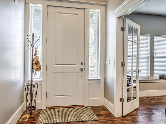 This is a custom floor plan from Braemar Construction, features 2726 sq feet on main level with 10 foot ceilings and a extra large 4-car garage, with 489 bonus theater room. Upgrades include lot development, water, power, septic and driveway to home, gas fireplace with custom mantle and stone surround, gas line to patio, appliances including large 5 foot refrigerator, 36 inch gas range, vented range hood, dishwasher, microwave drawer, and beverage refrigerator. Master bathroom includes free standing tub with floor filler, full tile custom shower, 3 shower heads, bench, niche, and euro glass door. A bar in the theater room, custom barn doors on theater room and den, upgraded siding with rough sawn beam accents and cultured sone, Modern style garage doors, custom lighting throughout, bench and built in cabinets in the mud room, hutch built ins, and an upgraded master closet package Licensed agent is owner of land.