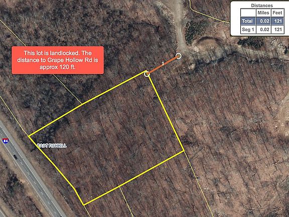 Own 2.7 acres in Holmes, NY for only $15,900! That’s half the market value of $31,000! This flat, wooded property is located right off I-84. Please note this lot is LANDLOCKED with no access to Grape Hollow Rd. The distance from lot to Grape Hollow Rd is approx 120 ft. Please review the photos carefully. Lot: 132084 Address: 579 Grape Hollow Rd Zoning: R3 Assessed Value: $30,000 Annual Taxes: $225 (for 2020) Electricity: No Water: No Septic: No BoH approval: No This property is within short driving distance to the following nearby towns/cities: To Hopewell Junction: 15 min To Poughkeepsie: 30 min To Danbury, CT: 30 min To White Plains: 45 min To Hartford, CT: 1 hr 20 min To Manhattan: 1 hr 30 min You have four nearby airports: (1) LGA only 1 hr away, and (2) Hartford 1 hr 30 minutes away, (3) Newark 1 hr 30 minutes away and (4) JFK 1 hr 30 minutes away. You have many opportunities for outdoor recreation nearby including: - Wonder Lake State Park - over 1100 acres with almost 10 miles of marked trails - Ninham Mountain Multiple Use Area - popular with hikers & bikers because of it’s extensive network of trails Please call today for more information - (347) 419-3960. Ask about owner financing options!