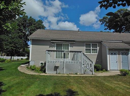 So Pleasantly Appealing! Easy1 floor living can be yours in this well maintained 1 owner Garden Style Condex that is ideal if you are downsizing, snowbird or just beginning that's conveniently located w/approx 903 sq ft of comfortable living space set on a very pretty yard w/a 1 car attached garage. Featuring gas heat, central air w/new condenser & irrigation system. Built in 2001 w/an open design offering a stylish kitchen w/wood floors, plenty of oak cabinets,cathedral ceiling,1st flr laundry off the kitchen, the kitchen is open to the dining room w/wood floors,open to the living room w/ "wood style" laminate flooring, slider to the large deck views the pretty & private yard, there is a generous master bedrm w/laminate flooring,master bath w/shower & ceramic tile flring & walk-in closet, a good size 2nd bedrm has a palladium window,laminate flrng & there is a sparkling full 2nd bathrm/w/ceramic tile flrng. A real plus is the terrific finished walk-out basement & more!