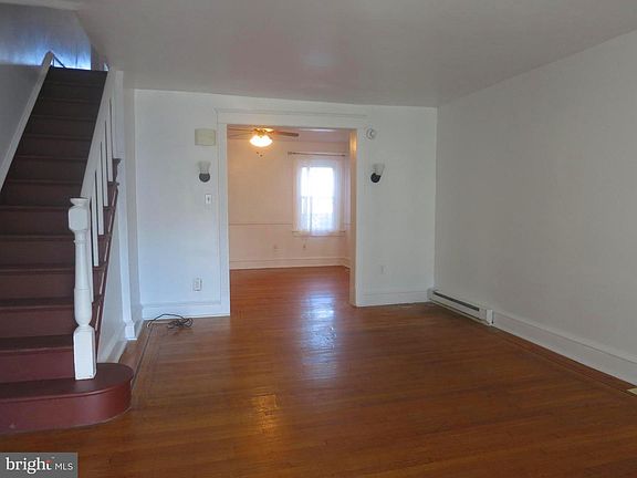 Lovely Straight Thru Row Home close to transportation and shopping. Cute front yard leads to the covered front porch. Enter the Living Room w/ribbon inlaid hardwood flooring. The Formal Dining room also features the same hardwoods, ceiling fan and an alcove. Kitchen offers gas cooking, recessed lighting, stainless steel refrigerator and an outside exit to a small shared deck with awning. The 2nd floor features the Master Bedroom with 2 closets, 2 additional bedrooms and a Ceramic Tile bathroom with a large linen closet. All bedrooms have hardwood flooring and 6 panel doors. Down the basement you will notice the garage has been transferred into a nice extra room. The room has been drywalled and feature ceramic tile flooring and an outside exit. Could be a nice tv room, office or extra bedroom. The main basement also with the ceramic tile flooring and a Full Bathroom with Shower Stall. Another separate room houses the washer & oil tank. The owner installed electric baseboard heating units with separate thermostats for heat or the oil tank and radiators are available to transfer back to oil if desired (oil burner has not been used in years) or upgrade gas which comes into the house. Lovely move in condition home. All windows have been capped, rooms freshly painted, and some vinyl replacement windows.