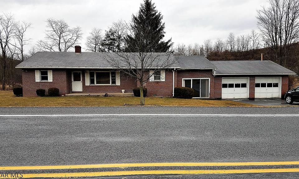 Come take a look at this hard to find, brick ranch home in the Chestnut Ridge School District. Situated on a gently sloping, 1.57 acre lot, this home features an open concept kitchen and dining room, a living room with a fireplace, a laundry room, a full bathroom, 3 bedrooms, a 1/2 bath and a den. The breezeway leads to the attached two-car garage. This house needs a little TLC to make it a home. It is located just minutes from I-99, providing easy access to Altoona or Bedford and the PA Turnpike. For the outdoor enthusiast, it's a short drive to Blue Knob State Park, Canoe Creek State Park or Shawnee State Park where you can enjoy hiking, skiing, fishing, swimming, camping or boating. Acreage and square footage are from the tax records. Buyer to verify. Property sold 'as-is'.