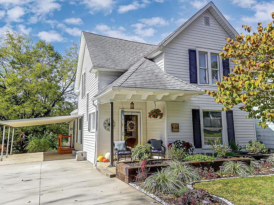 Beautiful two story home located in the Village of Utica. Well maintained with neutral colors, updated kitchen, bath and newer carpet. This home has the charm and character of the hardwood floors & wood trim throughout. Kitchen with concrete countertops, new cabinets, backsplash and shiplap with a built in desk for homework, crafts or business. Off the kitchen has a great size laundry / mud room. The spacious bathroom has a large soaker tub, new tile, large vanity with marble countertop. A large living room for entertaining and a dining room. Three bedrooms up. Private backyard that you can't see from the road.. Also access the backyard from the walkout basement,. Wrapping this home up with a covered front porch, carport and paved circle driveway. Easy commute. Please see A2A. notes.