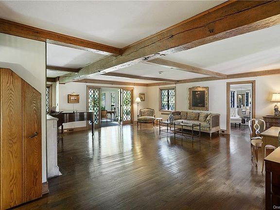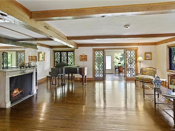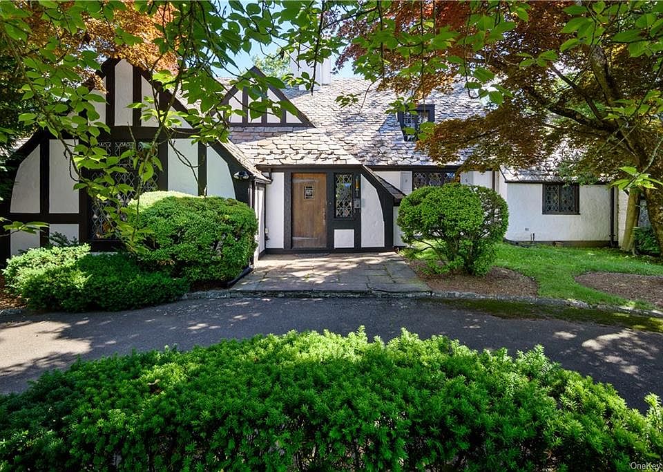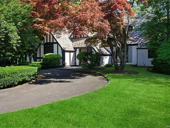 The gated circular driveway leads to this Tudor Revival reminiscent of a romantic English country manor on a corner lot. Located on one acre of lush lawns, this home offers bucolic gardens, greenhouse, pond, & four ensuite bedrooms. Front Hall opens to exceptionally gracious & spacious living room w/ beamed ceilings, gas fireplace w/ french doors to four-season sunroom. Large formal dining room leads into the expansive kitchen offering beautiful views of gardens, working island and butler pantry. Lower level includes a majestic stone fireplace, full bar, recreational area for billiards and entertaining. Lower level 945 sq ft not included. This home has preserved the classic architectural details including the leaded and stained glass windows w/ Heraldic shield, exposed beams, custom built-ins, slated roof, and hardwood floors. Close to train, highways, restaurants, shopping, schools, beach and parks. Don t miss this magnificent home inspiring serenity, relaxation and complete privacy.