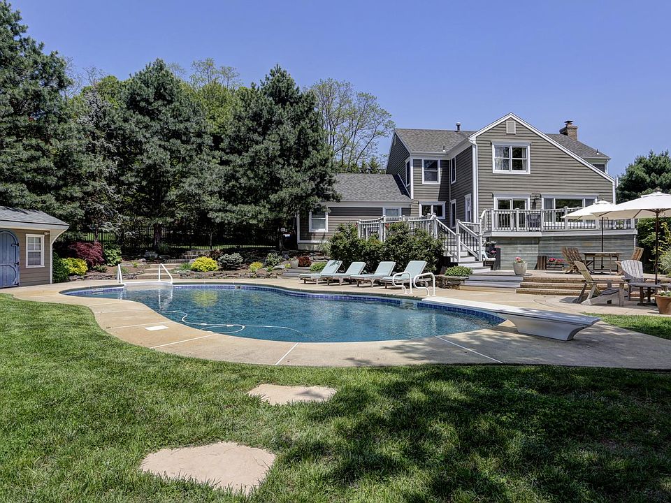Gorgeous center hall colonial is nestled away on a resort-like 1.4-acre private lot. A 2-story foyer welcomes you to this incredible 4BD, 2.5BA home. First floor features a grand living room with custom built-ins & woodburning FP. The kitchen with SS appliances & Corian counters flows effortlessly into the family room. Sliders from FR lead to professionally landscaped back yard showcasing a multi-tiered deck & inground pool. Every bedroom is generously sized & features hard wood floors with lots of closet space. Enjoy a master suite complete with large walk-in closet and MB with dual vanities. Fine craftsmanship is evident with wide staircases, solid wood doors with gorgeous hardware & custom moldings. Sidewalks all the way to Nut Swamp and Thompson schools, less than 1 mile away!