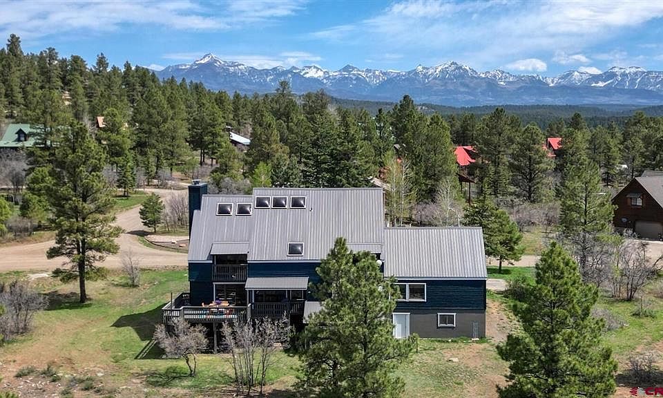 Experience the best of both worlds at this stunning Pagosa Springs residence: one of the most desirable neighborhoods out the front door, and the feeling of total privacy out the back door. The double lot sits up high to maximize the best spot on the circle. Nestled in the tranquil corner of Lake Forest Estates, this impressive 5-bedroom, 4-bathroom home provides a unique blend of community living and secluded tranquility on its 1.2-acre lot. The exterior recently received a fresh coat of paint, including the decks and balconies, and a new metal roof was recently installed. The property’s landscaping, patio, decks, and balconies create an inviting outdoor space perfect for soaking in the stunning mountain views. Step inside to discover 5,622 SF of tastefully updated living space. The home features new water-resistant vinyl flooring in the kitchen and dining areas, new Andersen sliding doors and windows, updated light fixtures, as well as updated movie room, bedrooms, and bathrooms. The kitchen is a chef’s dream; upgraded with new quartz countertops and fully equipped with a range, two ovens, two refrigerators, and a walk-in pantry. The bedroom loft and landing provide flexible spaces for office/craft/fitness needs. In addition to the 2-car garage and attached separate workshop, the property boasts a host of interior features like cathedral ceilings, skylights, wet bar, and fitness and game room, all contributing to the unique architectural character of this home. Downstairs offers endless possibilities for gameroom, movie room, ski weekend gatherings, sauna/hot tub retreat and more. Come see this amazing home today!