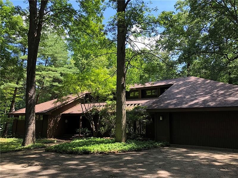 Designed by Burt Hill Kosar Rittleman. MID-CENTURY MODERN LOOK with Dramatic vaulted ceiling in living room. Beamed cathedral ceiling in family room. Clean lines. Densely wooded acre. Breathtaking hardwood floors. Tons of storage. Large elegant "L" shaped master with en suite. Five doors from Butler Country Club. Enjoy a cozy fire in the fireplace especially designed for this home. l A spectacular view from every window. Large rooms throughout . Roof 2 weeks old. Yes, you may want new counter tops, or to paint otherwise awesome kitchen cabinetry. You have probably been eyeing his home for years. It can now be yours.