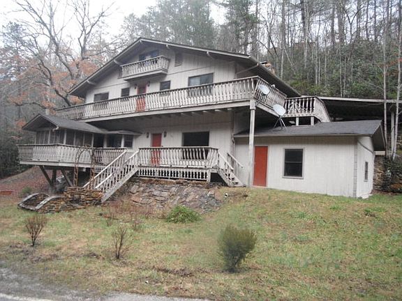 Large 5 bedroom home with additional 1 bedroom, 1 bath apartment, 3 fireplaces, 2 kitchen in main house, attached workshop, screened in porch, decks on all levels, small stream runs thur property.