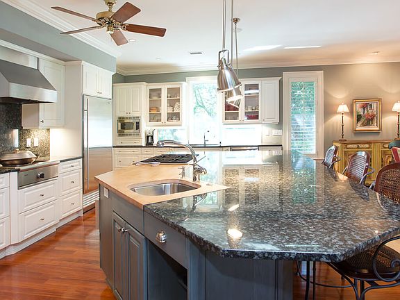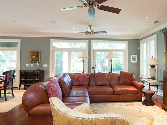 Nestled on a verdant half-acre lot, 579 Whimbrel Road is surrounded by gorgeous live oaks and stunning magnolia and palmetto trees, each contributing to the serene privacy of this outstanding home. Effortless flow is created by the expansive open floor plan of this three-bedroom-plus, well appointed and furnished residence. Features of the dining and living areas include graceful trims and moldings, superb high-end finishes, dimmable recessed lighting, and striking Brazilian cherry hardwood flooring throughout. Soft, natural light filters through floor-to-ceiling sliding glass doors on the southern exposures, drawing guests to the screened veranda for a quiet morning cup of coffee in the midst of nature. The fully equipped kitchen was designed with the gourmet chef in mind and features stainless steel appliances, a separate built-in gas wok on cooktop, six-burner gas stove top, Sub-Zero refrigerator, Thermador self-cleaning double oven, and spectacular granite countertops. Open to the dining area, the resident chef will enjoy engaging with friends and family at the integrated raised countertop seating area. The spacious master bedroom is its own island retreat with hardwood flooring and generous windows that reflect the lush greenery outside. The elegant en suite bathroom has a large soaking tub, two separate vanities, and high-flow walk-in shower. Sizeable guest bedrooms on the second floor each include private bathrooms and can accommodate extra beds. Additional features of this home include a three-story elevator, a two-car garage with a very large climate controlled storage area, freezer, wine refrigerator, outdoor shower to handle beach trips for pets or people, central vacuum system, and private office located on the second floor. Located behind the second security gate and a short distance to Kiawah's 10-mile beach, residents of this quiet cul-de-sac neighborhood enjoy easy access to the Island's amenities--including The Ocean Course, world-class tennis, 30 miles of paved bike trails, and five-star dining opportunities: everything needed to enjoy a pleasurable life of social and sporting experiences. A Kiawah Island Club Social Membership is available with this property. Note: Photos marked "visualization" simulate how a space might appear if repainted, redecorated, and/or in the case of currently unfurnished homes, furnished. The home in question does not currently have a space with these simulated colors or furnishings.