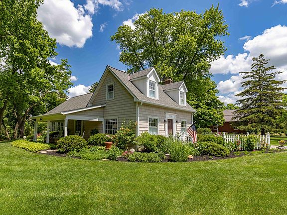 Idyllic historic Dublin home, circa 1850, lovingly restored. This spacious light-filled treasure sits on a park-like acre with a stunning overlook of Indian Run Creek. Majestic Norway Spruce trees, English gardens, a flagstone patio, a charming side porch, create enchanted areas for nature lovers. Extensive parking spaces, an original circular driveway, a barn-like three car garage attached to the house with a drive-through breezeway encourage outdoor entertaining. For those looking to create a modern farmhouse look, authentic heart pine floors, an original fireplace, high ceilings and gorgeous views make for a special escape. A surprising amount of storage includes a walk-out basement. Updated appliances and mechanicals and meticulous finishes make this magical home move-in ready.