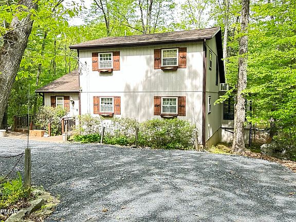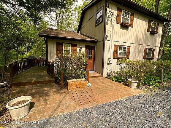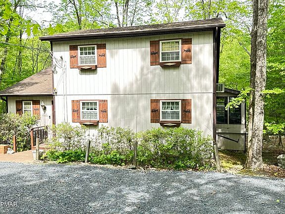 ***POCONO PLACIDITY*** STREAM FRONT WITH NEARBY ISLANDS*** LOWER TAXES *** PUBLIC WATER & SEWER *** A 4 Bed, 2 Bath Stream-front Utopia. This Charming Contemporary Home has Many Nice Features Such As: An Open Floor Plan with Vaulted Ceilings & Exposed Beams. Open the (4) Sliders and listen to the Calming Sound of Flowing Water. A Huge Four-Season Room, Large Rear Deck, Wood Burning Fireplace, & a Dry Crawl Space which Makes for Tons of Additional Storage. Catch the Native Trout Fish in Your Backyard or Sit on the Large Deck and Enjoy Great Nature Views. Why not go sit on the Island in the Middle of the Stream & Catch some Sun while Falling in Love with that Special Someone. Loads of Amenities in this Four-Season Community check out the Pictures! Do not Delay Schedule Your Viewing Today!