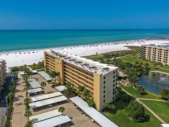 SIESTA KEY BEACH FRONT 2BD 2 BA CONDO Move right into this Gulf-front turnkey furnished, ground floor condominium residence. Located in the highly desirable & not often available, Building A. Walk out your lanai steps to the pool and a few more to the incredible, powdery sand of the World Class Siesta Beaches. Barbecue areas with Tiki style picnic tables. Not quite ready to make Florida your full-time residence? Gulf and Bay provides is one of the few remaining beachfront communities allowing monthly rentals. The exclusive, gated Gulf & Bay Club presents a beach lifestyle right on the Gulf of Mexico. Covered parking and guest parking close to your front door. Kitchen has wooden cabinets & beautiful stone counter tops. Utility room with Washer & Dryer in the unit. This exceptional condo provides a lifestyle beyond compare. Amenities include 3 heated pools, 8 tennis courts, pickle ball, a fitness center with spa and dry sauna, expansive clubhouse, racquetball and basketball courts. Close to Siesta Village to enjoy dining out, live music, and specialty shops. The culture of Sarasota can be yours for a night at the opera, theater or ballet. Art Museums and Botanical Gardens. This is the good life, ready and waiting for you. Never miss another awe-inspiring Southwest Florida sunsets from this incredibly located beachfront condominium.