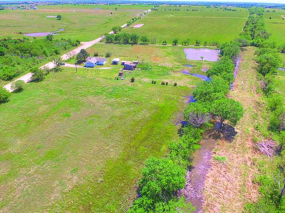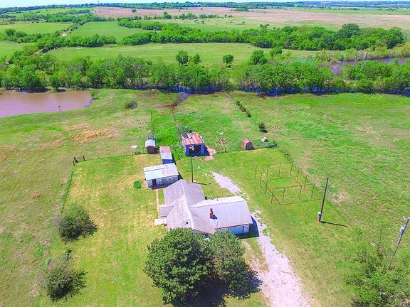 Here is a great AFFORDABLE country acreage that would make the perfect starter home or weekend hunting lodge. The rural home has a storm shelter just outside the front door and a garage attached for extra storage. There are also several out buildings on the property. The land is mostly cleared for grazing and a large pond is just west of the home. Property selling "AS IS".