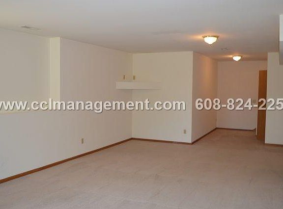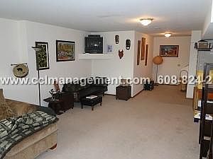 The main floor of this four bedroom duplex in Fitchburg features a great room with vaulted ceilings and a gas fireplace. The fully equipped kitchen offers a breakfast bar. The master suite and laundry facilities complete this level. Upstairs there are two bedrooms with vaulted ceilings as well as a full bathroom. The exposed lower level has another bedroom and a full bathroom. Outside, this duplex has a 3 car garage and a deck. Lawn care and snow removal provided! 3 Car Garage Central Air Deck Dishwasher Finished Lower Level Gas Fireplace Lawn Care Provided Main Level Master Suite Professionally Managed Snow Removal Provided Vaulted Ceilings Washer and Dryer 12 Months +