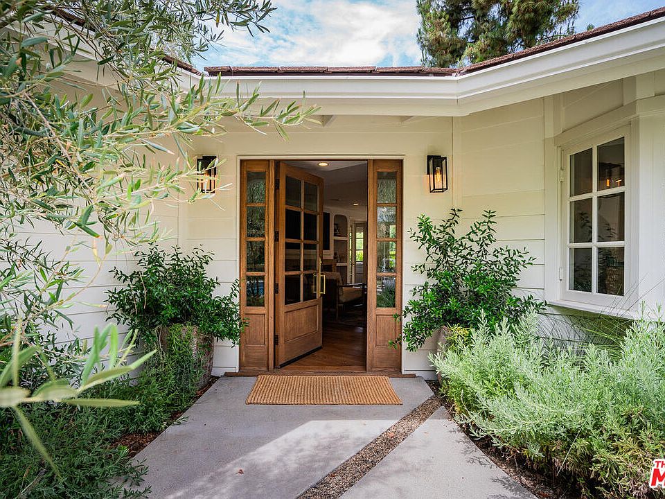 Nestled up a private drive in the highly coveted, equestrian, guard gated community of Hidden Hills on an elevated 1 acre lot. This charming and rare single story California Ranch was meticulously reimagined in a complete high-end designer driven remodel in 2022. The home's open floor plan is filled with natural light and features 3 en-suite bedrooms, 5 bathrooms with a large office which can be converted to a 4th bedroom. The property includes all new systems, new French oak floors, vaulted high beam ceilings, custom wood windows and doors and an architectural limestone fireplace surround in the family room. The gourmet chef's kitchen which opens to the dining and family room features a large island, Wolf & Subzero appliances, quartz countertops, walk-in natural light pantry, counter-to-ceiling painted wood windows, 2 full size sinks and custom inset cabinetry with fumed oak and ivory finishes. The expansive dining room can host even the largest gathering boasting a serving wall featuring Zellij tile and glass & oak cabinetry. A charming brick entry, complimentary modern cottage laundry and elegant powder room with a floating integrated sink in Calcutta Viola marble are spaces that underscore up-to-the minute sought after design. The entry courtyard features a brand new pool and spa adorned with lush landscaping of lavender and olives. The yard is complete with an outdoor sitting area, BBQ, barrel sauna and multiple walking pathways around the home, ideal for entertaining and hosting family and friends. Additional features include control 4, surround sound, life source water filter, vegetable garden beds, fruit orchard, and a spacious bonus room adjacent to the garage. This home is designed to perfection with great attention to detail. Bring your suitcases and enjoy the Hidden Hills lifestyle.