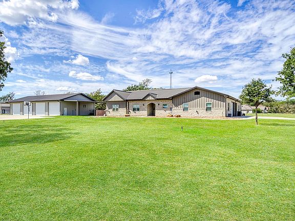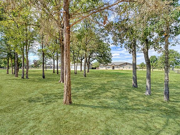 This well-designed and versatile property features 6 bedrooms and 4 bathrooms in the main house, plus a separate 1 bedroom/1bathroom guest house with its own entrance, under the same roof, complete with its own private entrance, full kitchen, and laundry—ideal for multigenerational living, extended family, or guests. The main home includes two laundry rooms, a three-car garage, and a functional layout with quality finishes throughout. Exterior construction is stone and frame with a metal roof added in 2017. Interior highlights include quartz countertops, a farmhouse sink, ceramic tile and carpet flooring, a gas stove, and two tankless water heaters. The primary suite offers a spa-style bathroom featuring a jetted tub, walk-in glass shower, and two spacious closets. Outdoor amenities include a freshwater pool with hot tub added in 2023, an outdoor kitchen, a stocked pond for fishing and bird watching, and a fully fenced property with two electric gates for controlled access.