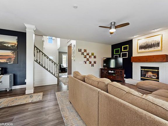 Beautiful home on large corner lot is updated throughout. New flooring, fresh paint, quartz counter tops and tiled backsplash in the kitchen. Ample living room with gas fireplace is a great place to hang out and is open to eat-in kitchen. Main level includes an office space and formal dining room. 4 bedrooms and loft upstairs with large master suite and vaulted ceilings. Master bath is tiled with soaker tub and tiled walk-in shower. Finished basement is perfect for entertaining or could be the ideal in-law suite with kitchenette/bar, large bonus room with egress window, full bathroom and an additional room that could be used as a bedroom/office. Backyard is fully fenced and nicely shaded for outdoor entertaining. Community pool and courts.