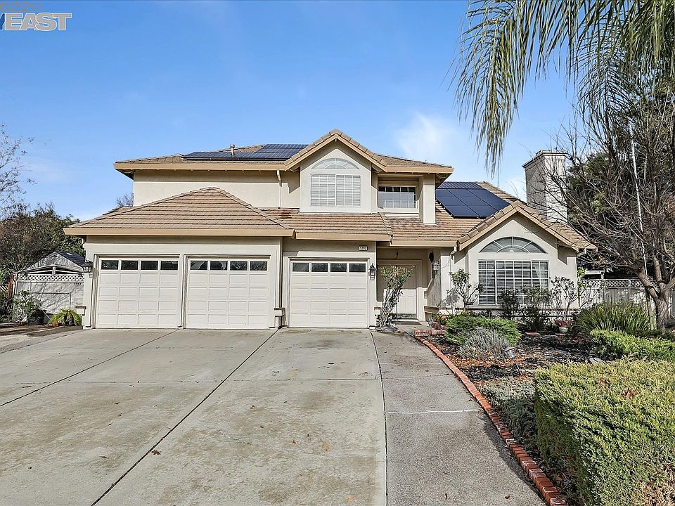 Opportunity knocks! Bring your imagination to secure this expansive home in Livermore. In largely original condition, this home awaits a new owner's personal touches. Situated on a large lot with multiple patios and decks, this property's features include: 4 bedrooms, 3 bathrooms, large enclosed patio room with multiple windows and sliding doors, a living room, a family room, dining area, eat in kitchen, and laundry room. The expansive primary suite is upstairs, is the full width of the upstairs footprint and includes a sitting/retreat area. 1 bedroom and bathroom are located downstairs and that bathroom includes exterior access. There is a dual HVAC system, 3 car garage, 2 solar systems (leased), granite counters, stainless steel appliances, a pantry, a wet bar, and 2 fireplaces.