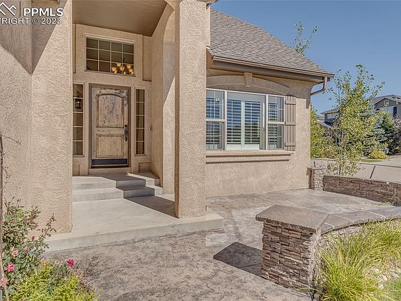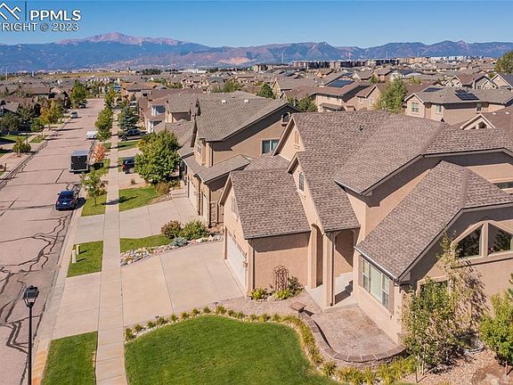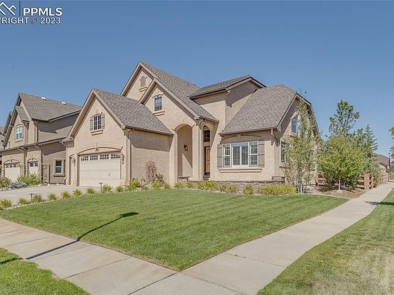 A gem of a property in an absolute gem of a neighborhood… Villages at Wolf Ranch in school district 20! Quality built by Goetzmann Custom Homes on a south facing, choice corner lot with outstanding curb appeal… a place you’ll be proud to call your own! Enjoy the low maintenance stucco exterior, Pikes Peak views (from the back patio), wonderfully landscaped fenced backyard with 30 x 13 patio & built in grill station… Weber grill is included! The Powers corridor is a short jaunt for a north/south commute or when it's shopping, home improvement, restaurants, movies or golf demanding your time, attention & recreation. Medical/hospital is less than a 10 minute drive. Gateway Park is moments away (you won’t need your car!) with wonderful Summer concerts & some of our best local bands! Inside there’s brand new carpet throughout, beautiful hardwood floors at entry/living room/dining room/kitchen/powder room & main level office/study (with French doors)… plantation shutters at living, dining & family rooms offer a classic & timeless elegance! The eat-in kitchen has slab granite counter tops, stainless steel under mount sink, tile backsplash, pantry, recessed lighting & Whirlpool stainless steel appliances. Upper level master bedroom is spacious, has vaulted ceilings & an en suite five piece master bathroom with double walk-in closets & there are two upper level secondary bedrooms that share a Jack & Jill full bathroom with double vanities. If you want/need a “cool” location in the Summer just head to the basement & set up camp there, the 15 x 12 bedroom is equipped with double closets/double entry doors & is adjacent to the rec room/2nd family room… down the hall is a full bathroom with granite countertops, tile floor & double vanities. Worthy of mention are the following features and amenities: central air conditioning, bullnose corners, gas fireplace, 15 x 10 stamped concrete front patio, vinyl windows, automatic sprinkler system and it's simply a very sweet property!