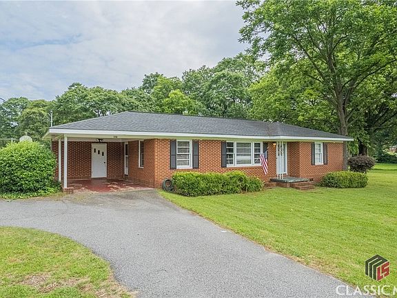 4 sided brick home conveniently located near Athens Tech, Highway 29 and Athens. This home is on a large level lot with a paved loop driveway. There's a formal living room up front with a den looking over the back yard with a great patio area suitable for entertaining guests. Two bedrooms and a full tile bath complete the home all on one level. The roof is only 5 1/2 years old and HVAC was replaced in 2011 with the most recent service being done in 2022. Water heater is 3 1/2 years old and updated breaker box by a licensed electrician is already complete October of 2022. Home has public water and a septic tank. Natural gas heat. Beautiful back yard with a storage shed and basketball goal! Schedule a showing today!