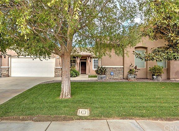 Welcome to this lovely 3 bedroom, 2 bathroom home with both formal living and dining as well as a large family room and bonus room plus an attached 3 car garage! The interior offers lots of windows coupled with gorgeous dark wood-like laminate flooring and open floorplan making the home inviting and spacious. The designer paint scheme accented by bright while baseboards and crown moulding flows throughout the main area home. The family room and kitchen area are the heart of the home offering a great space to sit and relax while the meals are being prepared. The master bedroom is oversized and features its own private bath and oversized closet. The secondary bedrooms are all good in size and each offer a ceiling fan for added circulation and light. The backyard has a nice concrete slab patio area and lush green grass. The neighborhood is fantastic and this home should go quick so please call for a private tour to make this fabulous home yours!
