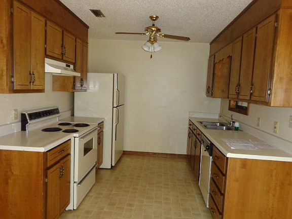 Dont miss your opportunity to own this home! This 2 bedroom, 2 bath home is well kept and comes complete with the refrigerator, dishwasher and stove! The back garage is wired and in great shape with a window unit, perfect for a man cave or storage! Call today! Property sold as is with all faults. No post closing repairs or payments will be made for any reason. For more information please visit www.hudhomestore.com. Equal Housing Opportunity. Property insured.