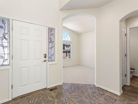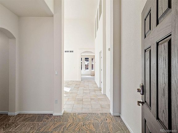 In sought-after Castle Pines, you will find a well-maintained & meticulously cared for 2-story home boasting 3 beds & 3 baths. Backing to open space while being steps away from Daniel’s Gate Park, you can submerse yourself in this fabulous community that offers trails, outdoor fun, & visits from surrounding wildlife. Enjoy glimpses of mountains & Denver skyline from your front porch. Step inside & immediately feel at home with stunning marble tile flooring, high ceilings, arched doorways, & stained-glass front windows creating an inviting ambiance. A main floor office/den makes for a delightful work-from-home space. Nearby in the great room, a wall of windows saturates this area with natural light. The same lustrous lighting is carried into the kitchen/family room creating an ideal spot for intimate gatherings or festive get togethers. The kitchen was designed for convenience with center island, lots of cabinets, stone countertops, new low noise dishwasher, new large microwave w/ Chef Connect & self-cleaning double oven. You will love the Scandinavian-inspired kitchen cabinets giving this kitchen a modern yet timeless feel. The main level is complete with ½ bath & laundry room. Upstairs you will find the primary suite with walk-in closet & spa like 5-piece bath with beautiful soaking tub & dual sided fireplace. The primary suite overlooks the private, xeriscaped backyard w/ mature landscaping & flowerbeds. The upstairs is complete with 2 more bedrooms & a full bath. The unfinished basement is a blank slate, roughed in for plumbing, you can let your dreams come to life. South-facing, the backyard is a true oasis. A multi-teared stone wall creates privacy & adds dimension. The seller has made thoughtful selections w/ trees, plants & shrubs – with warmer months approaching you will be able to enjoy lilac bushes blooming in the Spring, fruit trees, flower gardens & a picturesque Wisteria tree. Unmatched in location, this home is the one you’ve been waiting for.