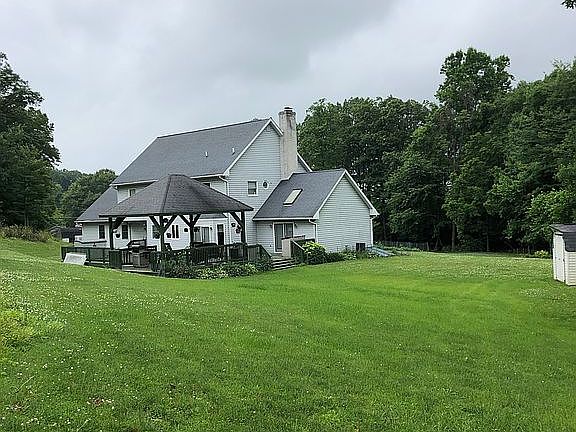 Stylish home with ergonomics designed into the home. All stained colonial wood moldings and case moldings with Rosettes and Plinth blocks. All oak hardwood flooring on first floor, refinished with five coats of high gloss polyurethane in 2003. Four bedrooms including Master Bedroom suite give spacious room. Walk in closet with stair case up to full attic (17 x 41) knee wall to knee wall. Honey spiced oak Kraftmaid Cabinetry in kitchen with SS double sink. Stove fan vents to outside for maximum cooking comfort. Family room with fireplace, Anderson Atrium doors with sliding screens, also has cathedral ceiling and fan with two fixed Velux skylights with privacy screens. Dining room has deck access through double Anderson Atrium doors with sliding screens. Finished basement with commercial grade carpet throughout entire basement floor. Play room or gym room with office room and large TV theater room with built in bookshelves. Insulated paneled walls with chair railing, colonial six panel painted doors and trim. Under the stair case closet for ample storage and fireplace ash clean-out. Completed drop ceiling with fluorescent lightning with Baseboard electric heat or forced hot air. Attic pre-wired for telephone, cable tv, electric heat. Driveway is 7000 square feet of blacktop with considerable parking area. Garage is 26’ x 36’ in dimensions with micro- laminate beams (no poles) 1300 pound electric hoist & manual chain style hoist in middle bay. Garage attic access with steel door entry into 3rd bedroom. Garage has its own electric panel box. Garage has 10 x 8 foot insulated doors to accommodate larger vehicles. 2022 New DoorMaster Wifi w/cameras on garage door units on all three doors. Deck is 1200 square feet approximate 22’ x 61’ with 18’ x 20’ Pavilion with Mansard roof design. Eight foot wide entry from either side onto deck from lawn. Washer and dryer on first floor for ease and convenience. (Four inch metal dryer vent to the outside). Storage under concrete porch, private septic system, new private well 2022 along with 10hp pump and expansion tank. 2022 Water treatment units installed. 2023 October, new Kohler 24kw stand alone Propane home generator installed. 2021 Separate Lot integrated and expanded lot size to 1.59 acres. Drive through area and large storage space stoned, exciting onto Long CT. Now a large oval driveway with two separate exits or entrances. Neighborhood Description Across the road (Long Court) is a Residential Development Schocary Ridge Estates with varied demographics. As the years pass, more couples with children have moved into this area. People often walk with their children around the development to enjoy the scenery. Very little traffic as there is no through road. Blue Ridge cable services. We are one mile from Route 309 which is right at the Northwestern School District. School buses come up into the development to pick up children. Odemheimer- 4/2022 – 5-2023 Well and Treatment Units, 10gpm pump, expansion tank etc. Andreas Plumbing & Heating 9-2023 New Amana 2 – Stage HVAC System (propane) 11-2023 Kohler 24kw Home Standby Generator – propane