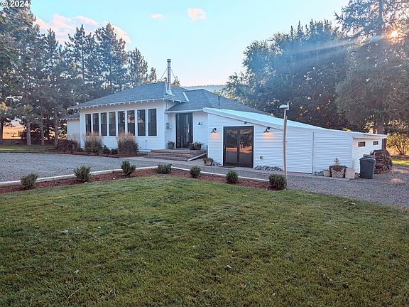 Peaceful privacy as you watch the sunset over Mt. Emily from this park like setting! With rich history as the original school house on Foothill Rd., this property and house have been transformed into a stunning 3 bedroom, 2 bathroom home in close proximity to outdoor recreation of Ladd Marsh. The open kitchen, living room and dining area are stunning with bright windows and high ceilings throughout. The master bedroom leads out to a deck from the french doors with views of Mt. Emily. Bask in the sunlight of the sun room/office in the mornings while taking in outdoor scenery from every window. Need extra storage? This home features a finished room for storage, exercise room, or den, and also features a lean to shed from the house. Meticulously landscaped, the property has patio and deck space, a fire pit, mature trees, lawn, fruit trees, tree fort, plenty of defined parking and driveway plus an oversized shed outbuilding. This one is turn key inside and out!