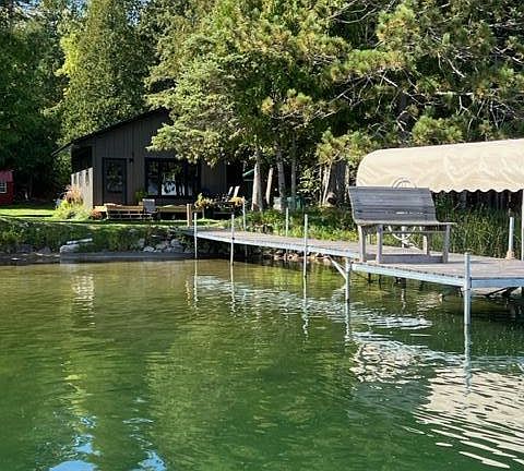 Adorable, fully updated Thunder Lake cabin on perfectly level lakeshore with hard sand lake bottom and a spectacular east facing lake view. You won't want to miss the beautiful sunrises from the dock or the lake facing deck. The cabin was completely gutted in 2022, new studs, window and door headers, new insulation throughout, new Anderson windows, new exterior doors, new metal roof, electrical, plumbing, baseboard heat, bathroom completely updated with custom cement sink, board and batten Diamond Kote siding, shiplap throughout, custom kitchen cabinets with butcher block countertops, new deck, brand new fridge in 2023, Vermont Casting LP stove. 3 sheds for storage. This cabin will make all of your dreams come true. Book a showing today.