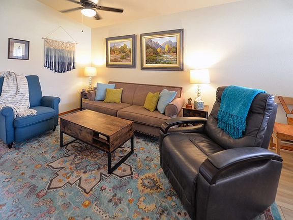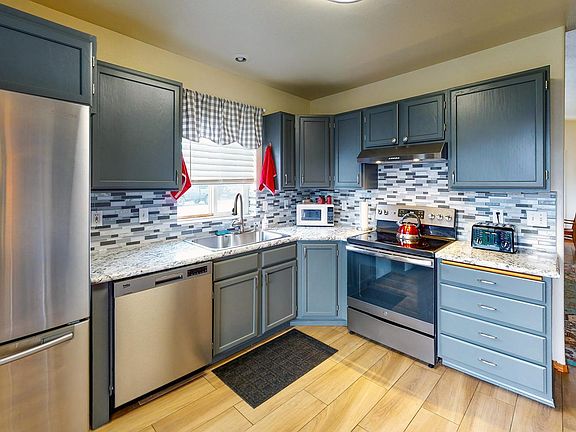 Nestled in a lovely family neighborhood, this upgraded home has everything you'll need for your stay, plus extras nearby. 3 Bedroom, 2 Bathroom Home across the street from a Quiet Park. Enter the home where a welcoming and beautifully styled great room awaits you. Cozy up on the couch or recliners and watch a family movie on the large SmartTV after a long day exploring Coeur d'Alene. When you're ready you're ready to dine, gather around the table which seats six with an extra few chairs in case you have company for game night. Follow the ceramic floors to the sunny, well-stocked kitchen where you'll find stainless steel appliances and updates throughout. A bar area has stool seating for two and extra storage, while the sliding doors that lead to the backyard provide ample lighting for easy meal prep. This home is conveniently located in the Coeur d`Alene Place neighborhood just steps from Bluegrass Park. The nearest main road is Ramsey, where you'll find restaurants, grocery stores, gas stations, and other businesses to help make your life as comfortable as possible.